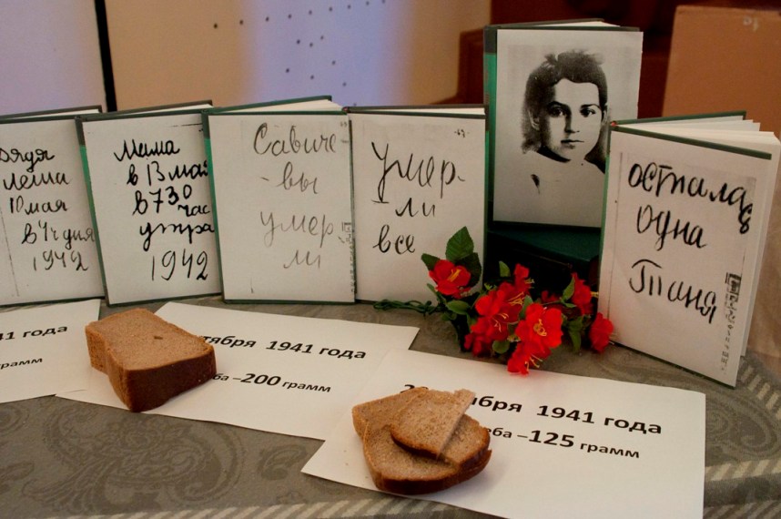 Таня Савичева начала вести дневник с первых дней блокады. В нем всего девять страниц, на шести из которых даты смерти членов семьи. Сама Таня умерла уже в эвакуации. Блокаду пережили только ее старшие сестра и брат, благодаря которым дневник девочки уцелел и стал одним из символов Великой отечественной войны.
