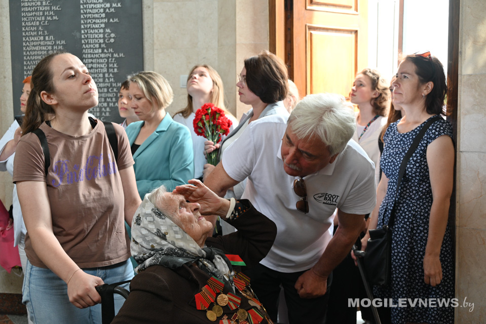 Встреча прошла на знаковом месте – Буйничском поле. София Петровна уроженка Белыничского района. Еще в детстве родители переехали в Березинский район, где и застала семью Великая Отечественная война. Отца Софии Петровны нацисты сожгли на ее глазах. Троих братьев она также больше не увидела: один погиб, защищая Украину, второй – Ленинград, третьего – расстреляли под Могилевом.