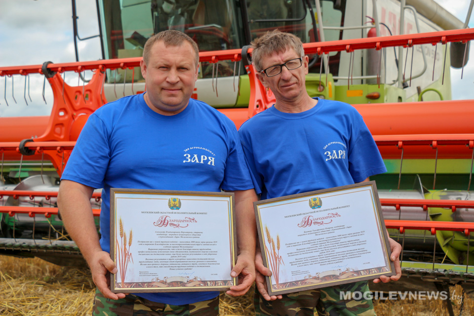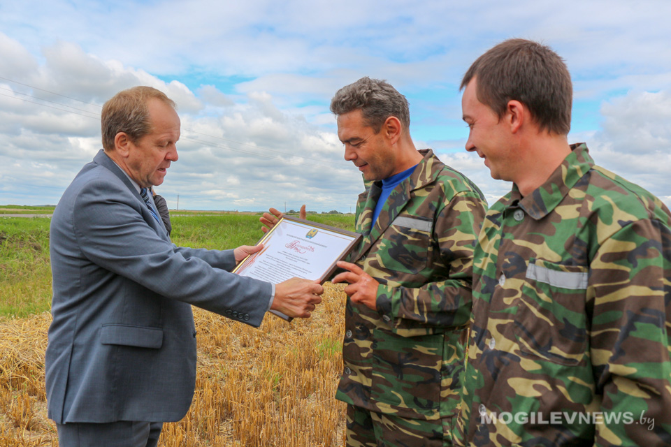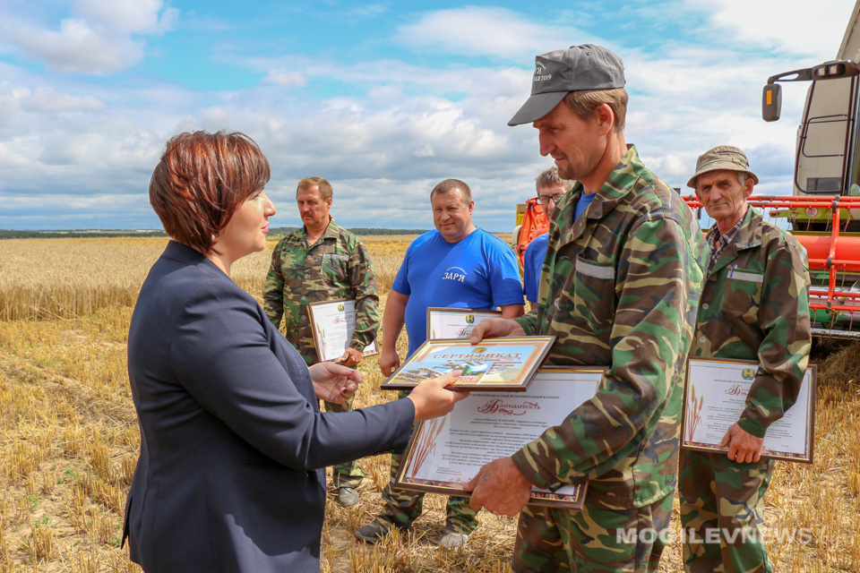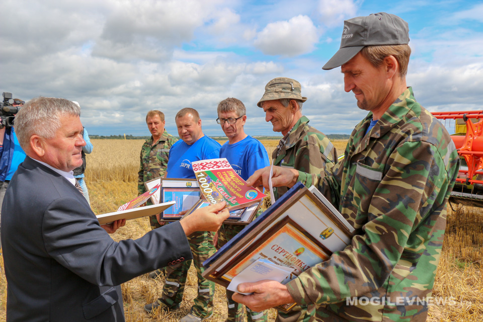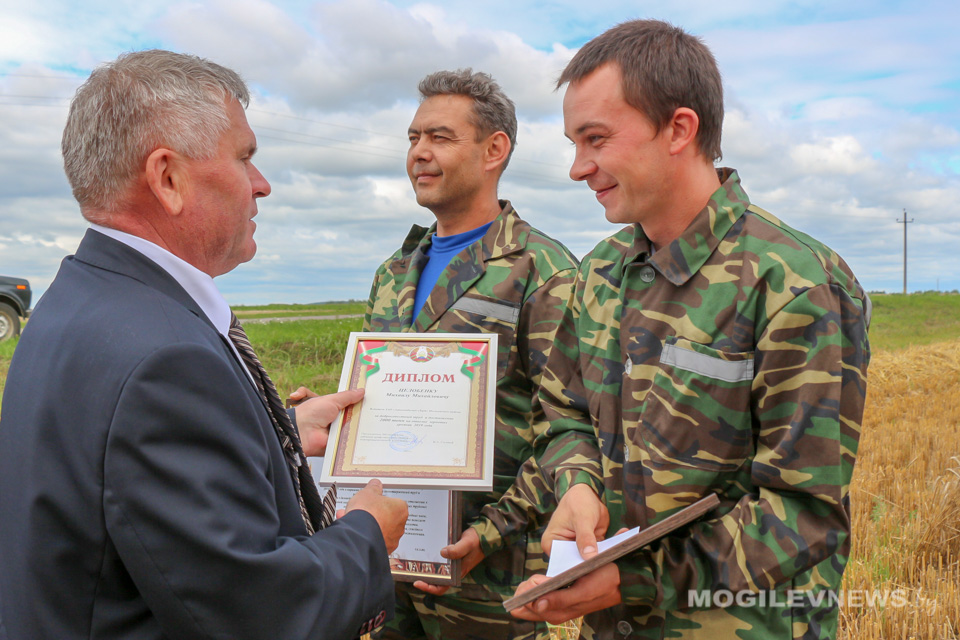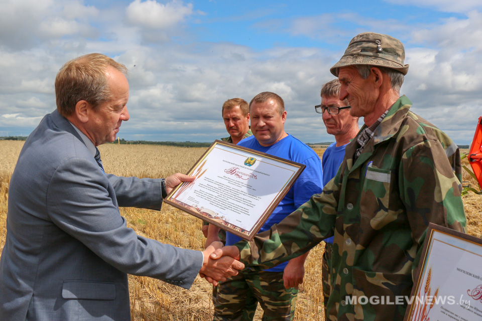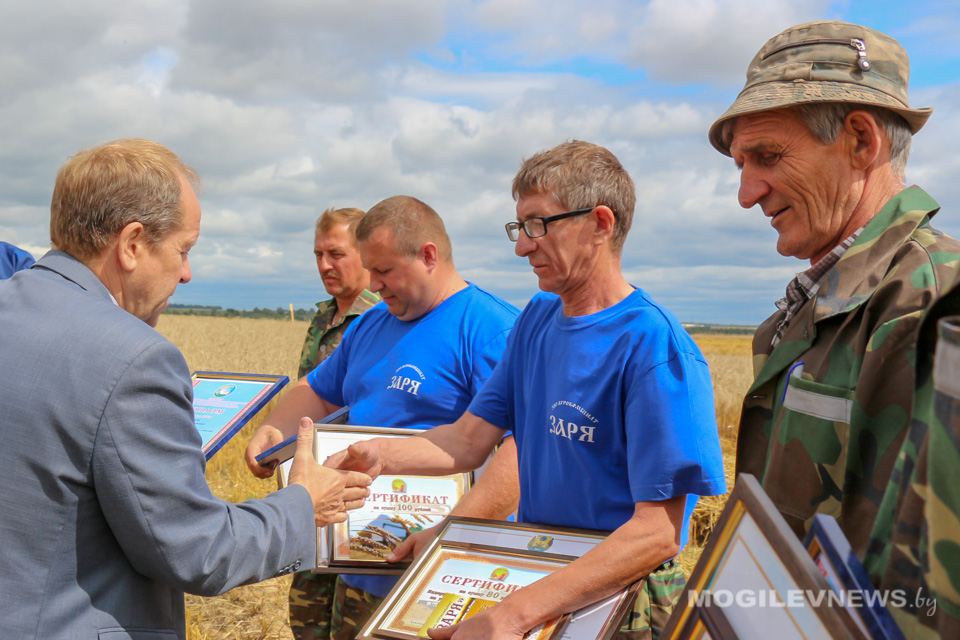 С высоким достижением передовиков на поле поздравил председатель Могилевского областного обкома профсоюза работников АПК Виктор Гейдель. Он вручил лидерам жатвы благодарности и ценные подарки, также комбайнеров и водителей грамотами и денежными премиями поздравили представители райисполкома, агрокомбината «Заря».