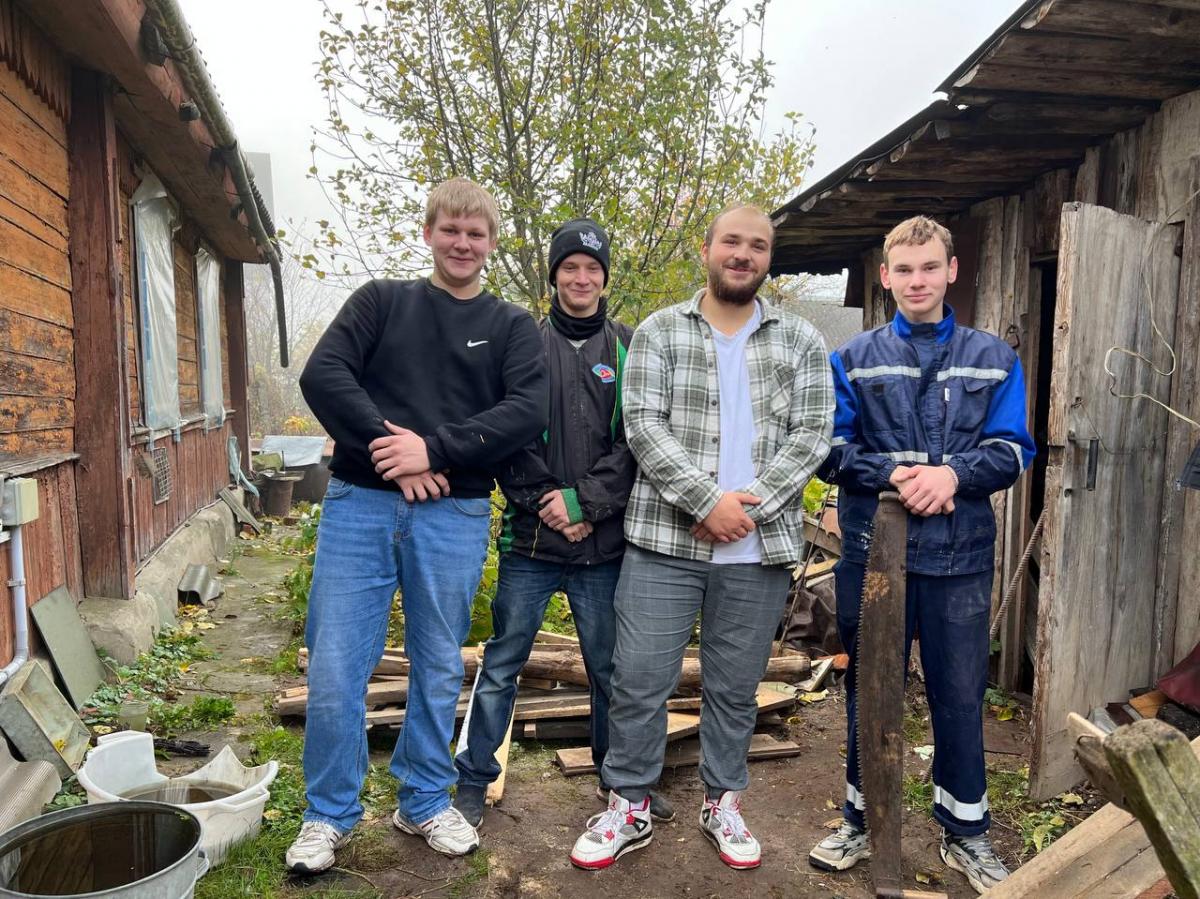 Сегодня группа заготавливает дрова на зиму пенсионерке Галине Смирновой.